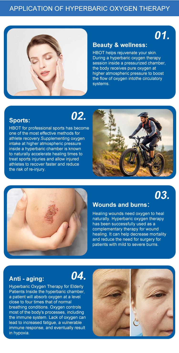 High-oxygen conditions suppress anaerobic bacteria growth, reducing infection risk—ideal for diabetic foot ulcers, post-surgical wounds, and other hard-to-heal injuries.