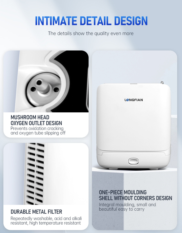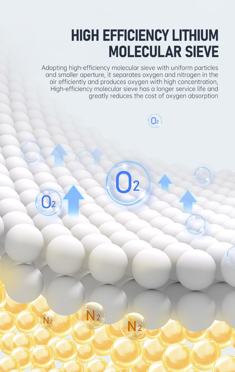 1. Upgraded pulse flow with 5 adjustable levels, equivalent to 1 L/min continuous oxygen